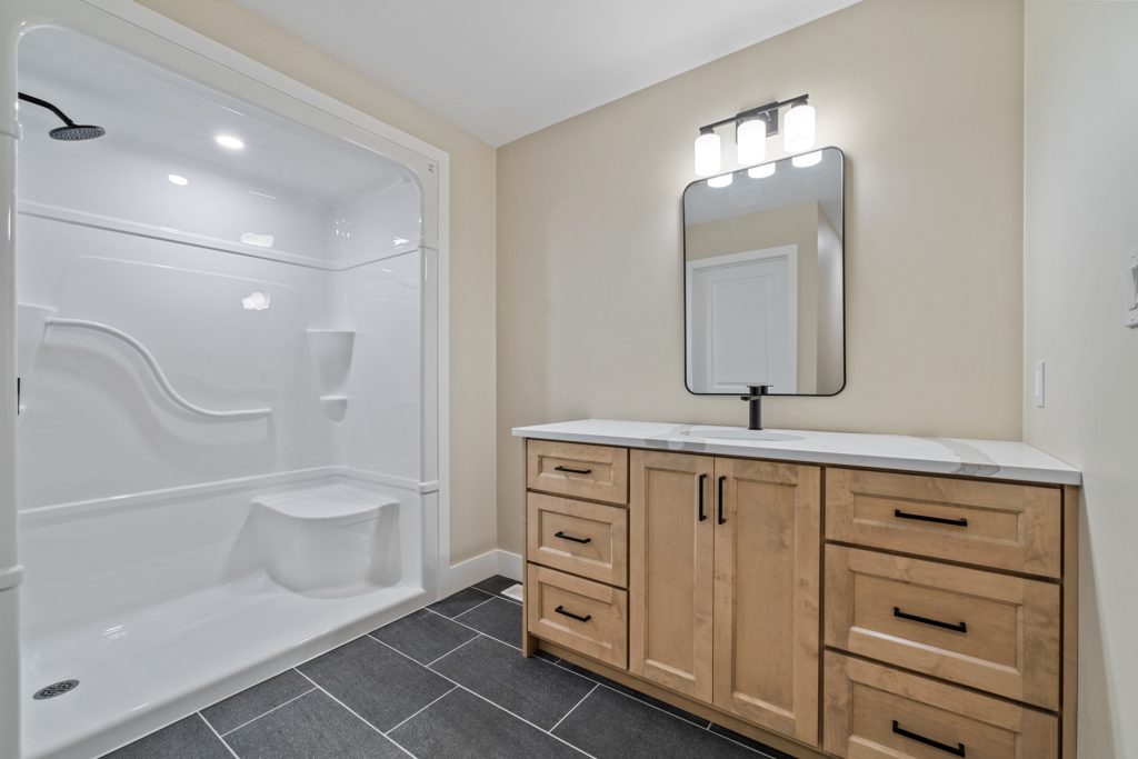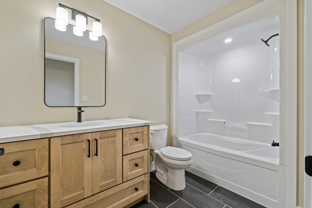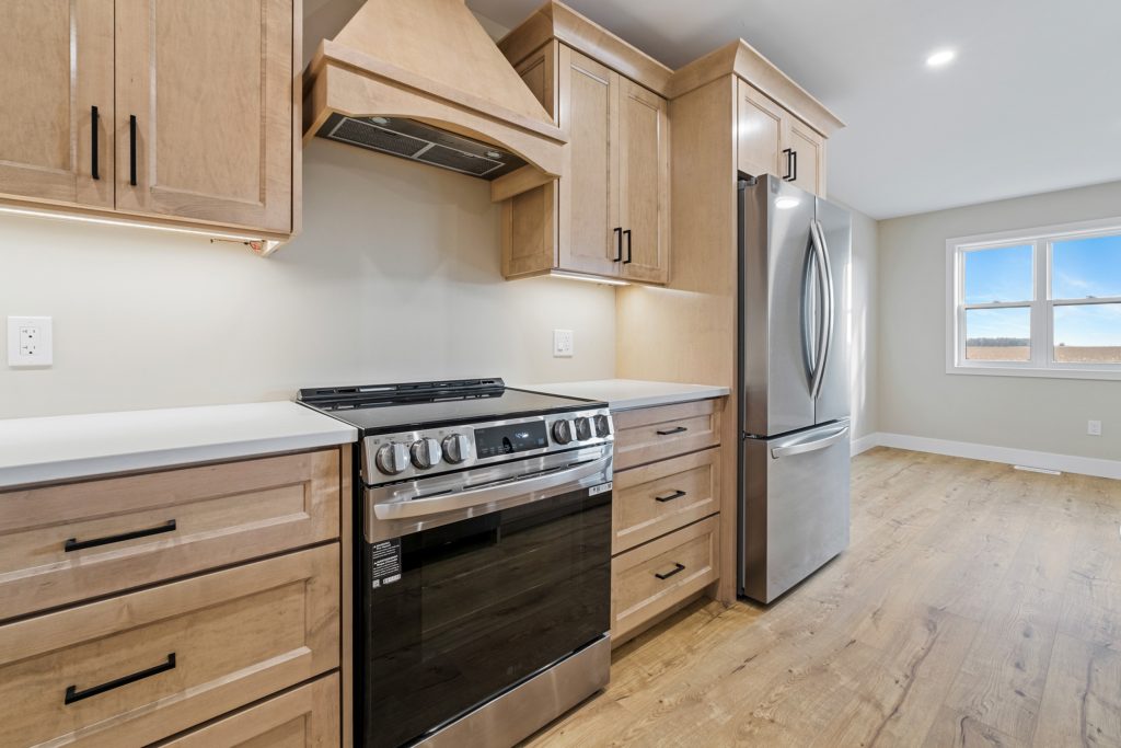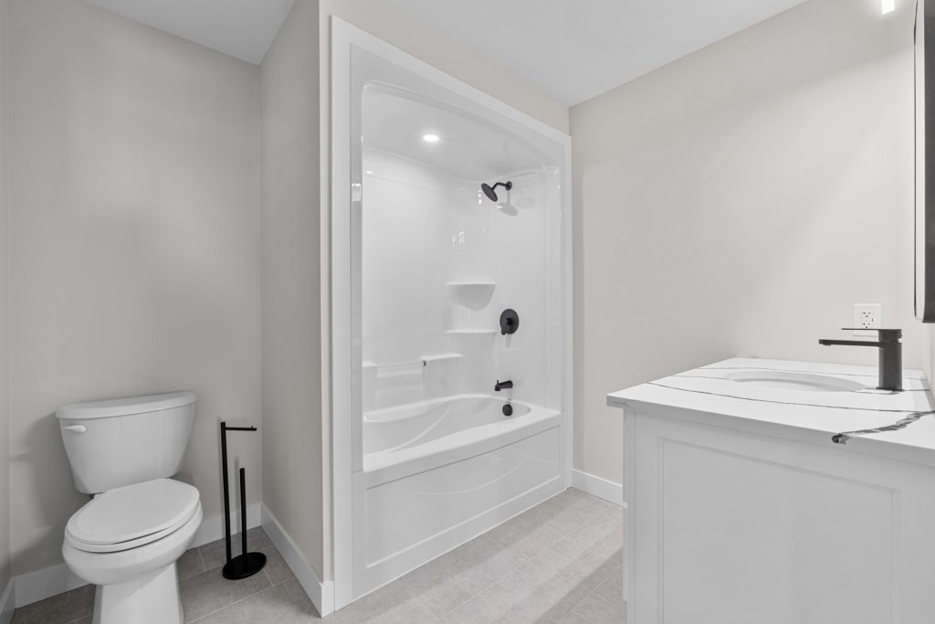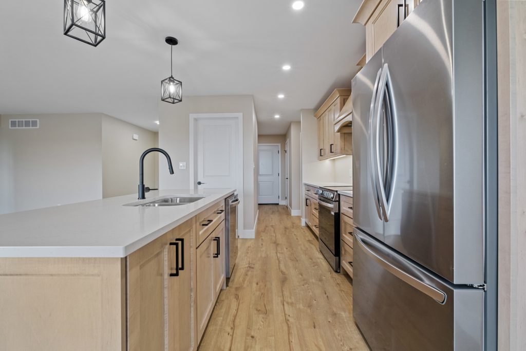 The Babylon model boasts high-quality finishes, including luxury vinyl flooring throughout and tile flooring in the en suite. The kitchen is adorned with custom cabinets and quartz countertops, combining style with practicality.