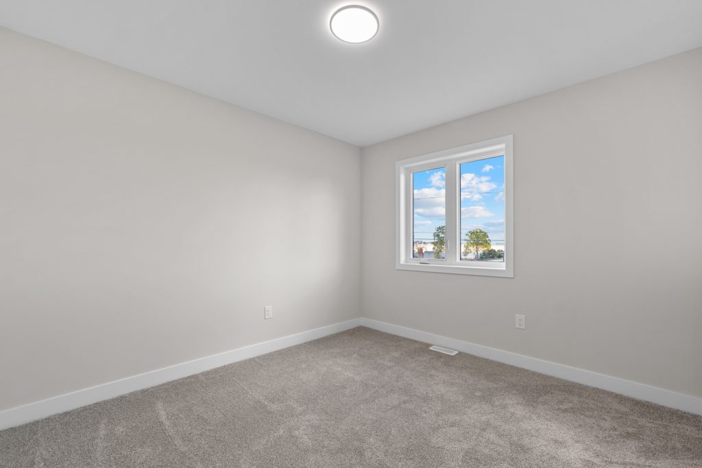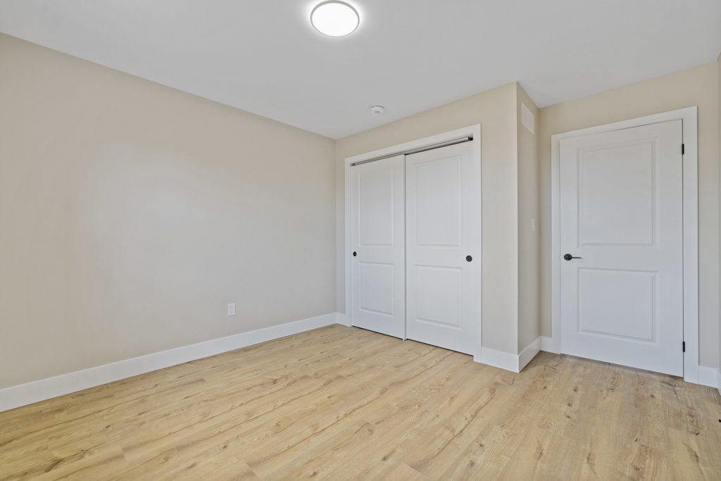 The main floor includes two bedrooms, highlighted by a spacious primary suite complete with a walk-in closet and a private four-piece ensuite. A second four-piece bathroom serves the additional bedroom and guests. Just off the entryway, a versatile den offers the ideal space for a home office, study, or additional bedroom.