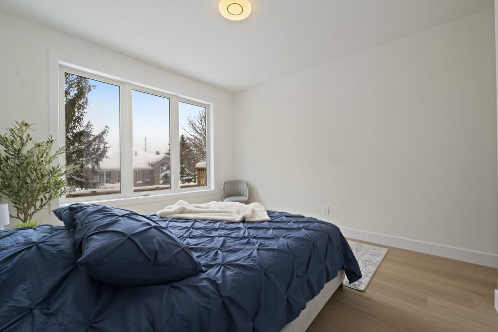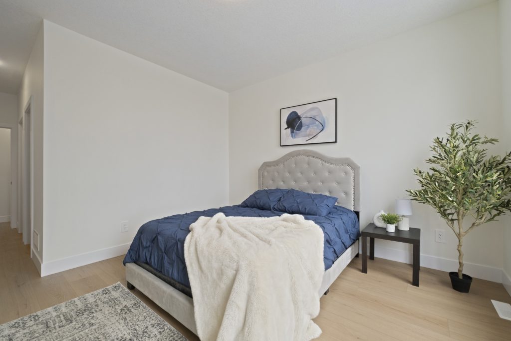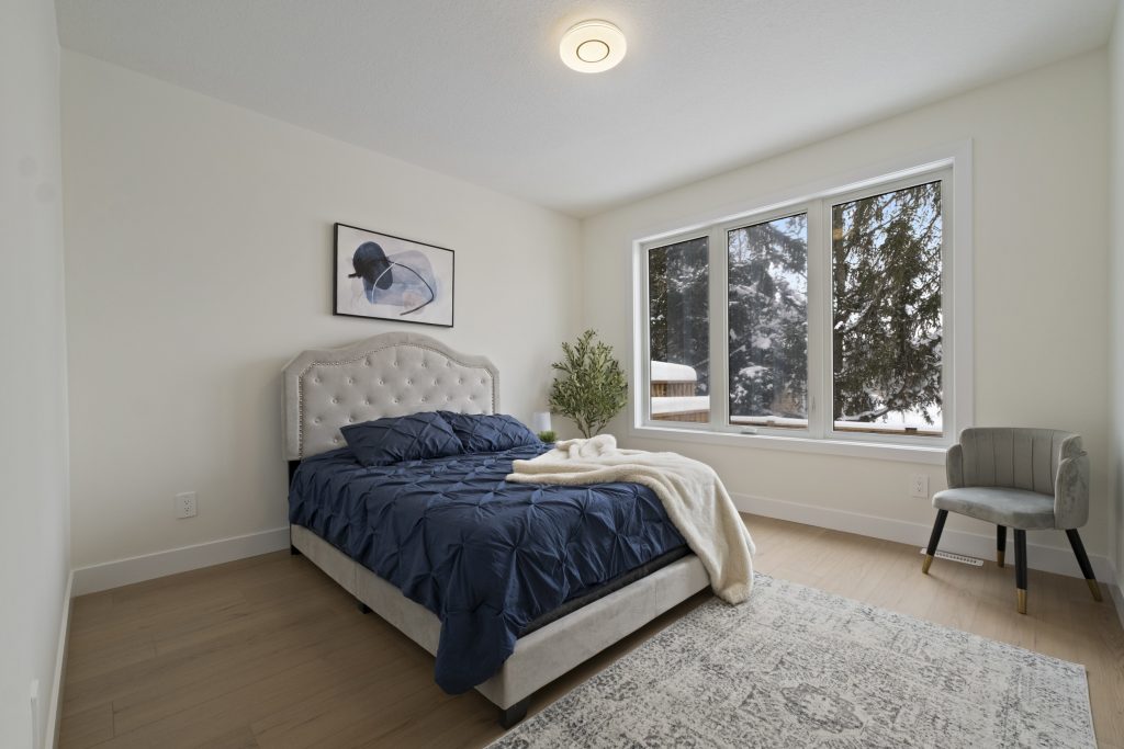 At the rear of the home, you will find the spacious primary bedroom, complete with a large walk-in closet and a 4-piece ensuite for ultimate convenience. The second bedroom offers a generous closet and easy access to an additional 4-piece bathroom. For added practicality, main-floor laundry is included.
